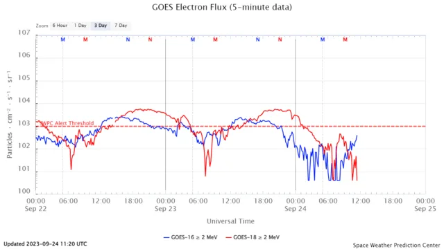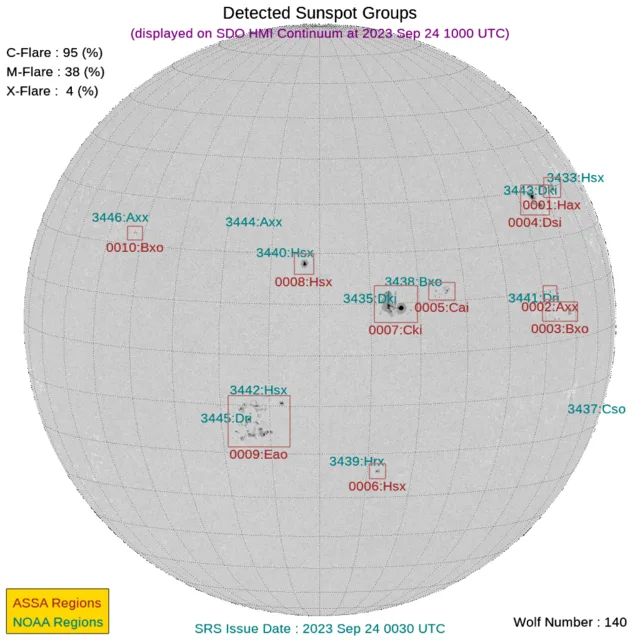 太陽フレアと黒点数(2023年09月24日更新)※中規模頻発&cme到着予測あり
