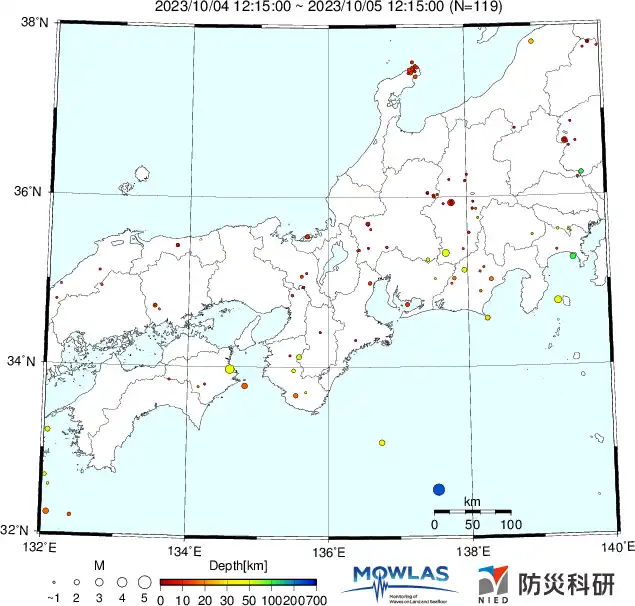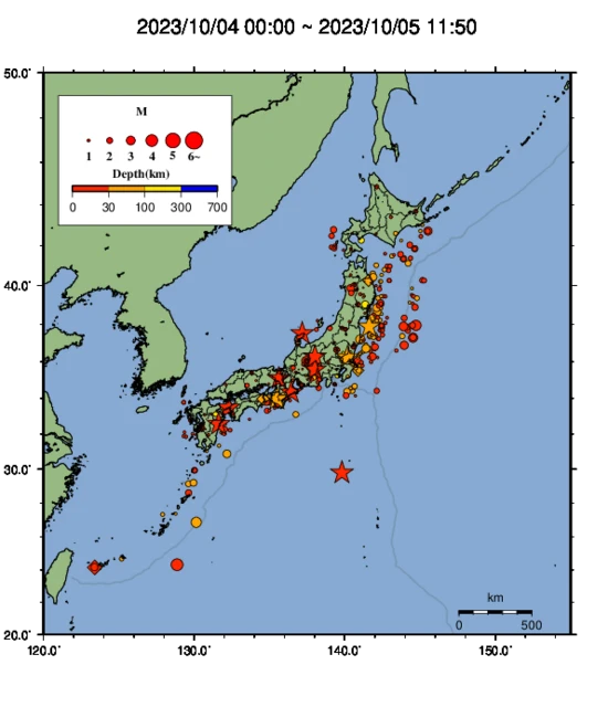 ●Hi-net日本地震分布と気象庁・・・hi-netの小笠原のデータは掲載日がずれて反映されるようです(翌々日に掲載)。掲載されないものもあるようなので気象庁の画像も付けます