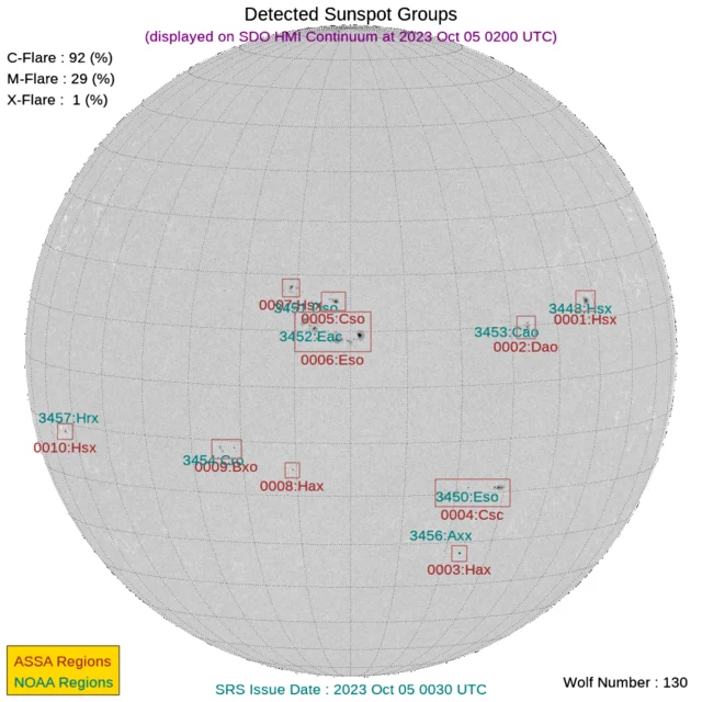 現時点で地球正面の黒点群は[3450, 3451, 3452, 3456]です。←黒点番号が振られていない活動領域でもフレアは発生しますので、あくまで目安として捉えてください。