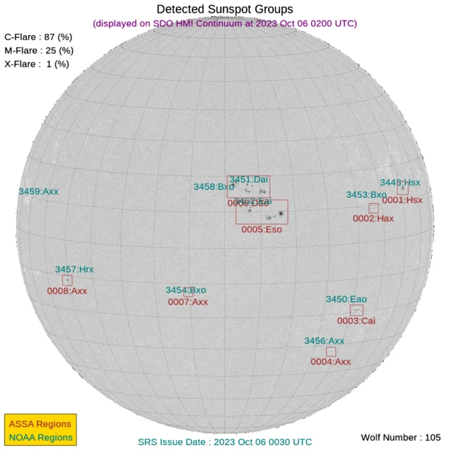 太陽フレアと黒点数(2023年10月06日更新)※CME到着予測あり