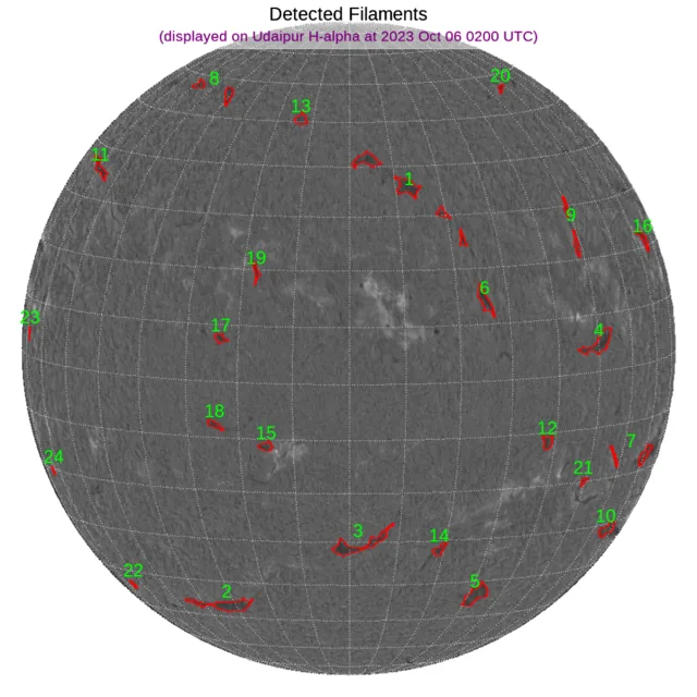 両極以外と中心付近以外の領域にフィラメントが点在しています