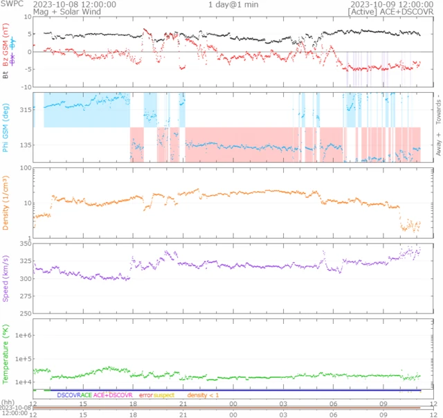 320km/s前後で推移していましたが少し上がり、現在340km/s前後で推移しています