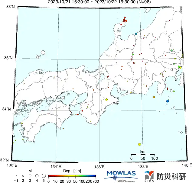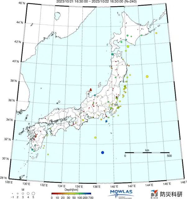 ●Hi-net日本地震分布と気象庁・・・hi-netの小笠原のデータは掲載日がずれて反映されるようです(翌々日に掲載)。掲載されないものもあるようなので気象庁の画像も付けます