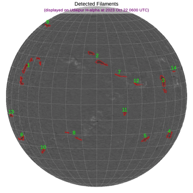 北半球西側、南半球高緯度帯以外の領域にフィラメントがあります