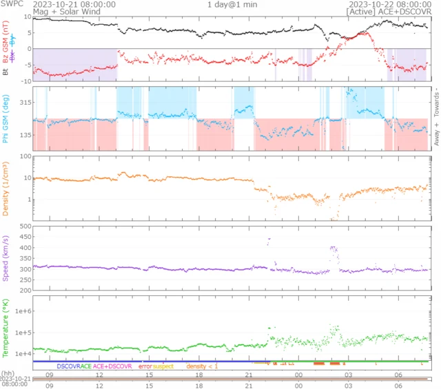 一時390km/s前後で推移した時間帯がありますが、現在300km/s前後で推移しています