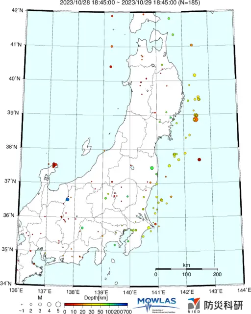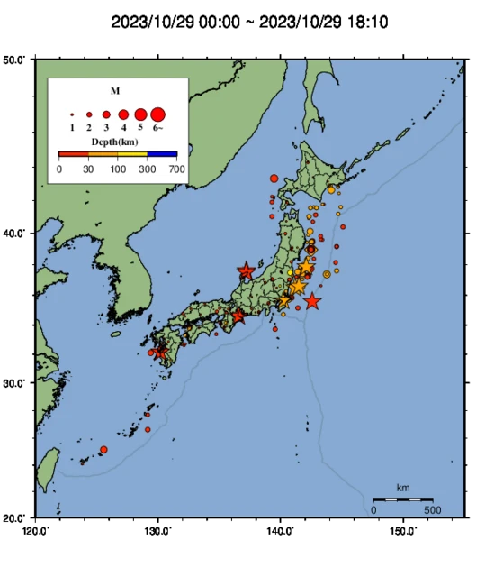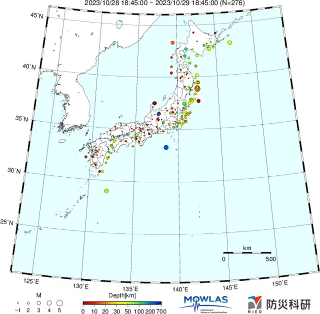 ●Hi-net日本地震分布と気象庁・・・hi-netの小笠原のデータは掲載日がずれて反映されるようです(翌々日に掲載)。掲載されないものもあるようなので気象庁の画像も付けます