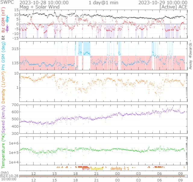 470km/s前後で推移していましたが徐々に上がり、現在600km/s前後で推移しています