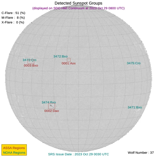 現時点で地球正面の黒点群は[3472]です。←黒点番号が振られていない活動領域でもフレアは発生しますので、あくまで目安として捉えてく ださい。