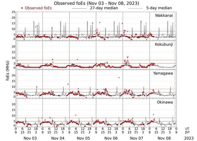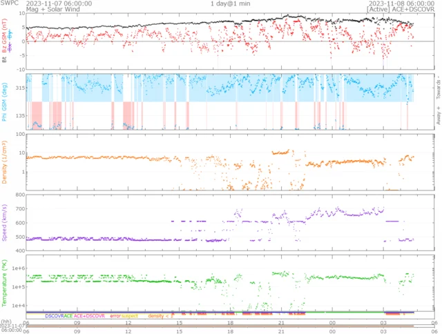 480km/s前後で推移していましたが段階的に上がり、一時670km/s前後まで上がりました。
