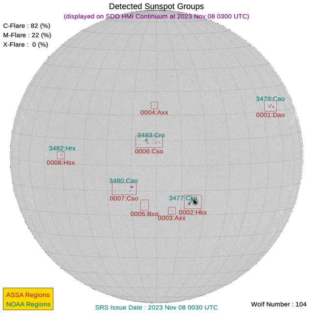 現時点で地球正面の黒点群は[3477, 3480, 3483]です。←黒点番号が振られていない活動領域でもフレアは発生しますので、あくまで目安として 捉えてください。