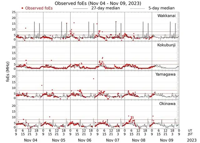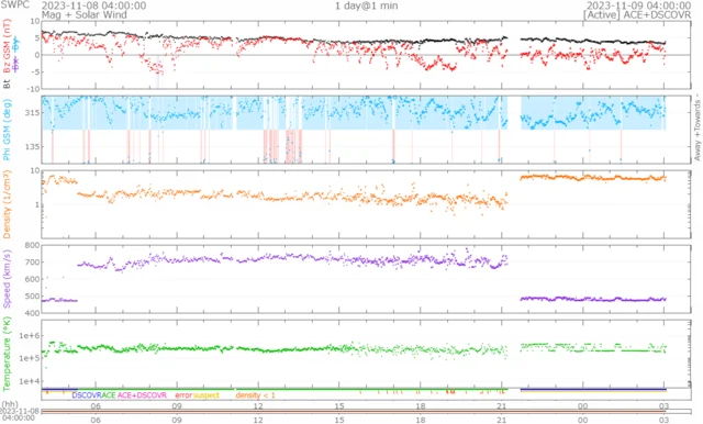 470km/s前後で推移していましたが、一段上がって710km/s前後で推移しました。現在は480km/s前後で推移しています