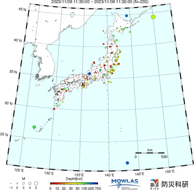 ●Hi-net日本地震分布と気象庁・・・hi-netの小笠原のデータは掲載日がずれて反映されるようです(翌々日に掲載)。掲載されないものもあるようなので気象庁の画像も付けます