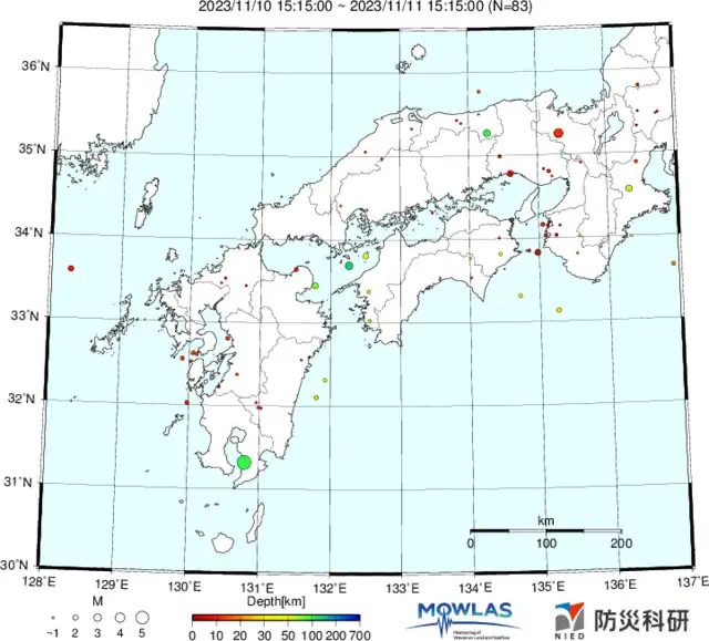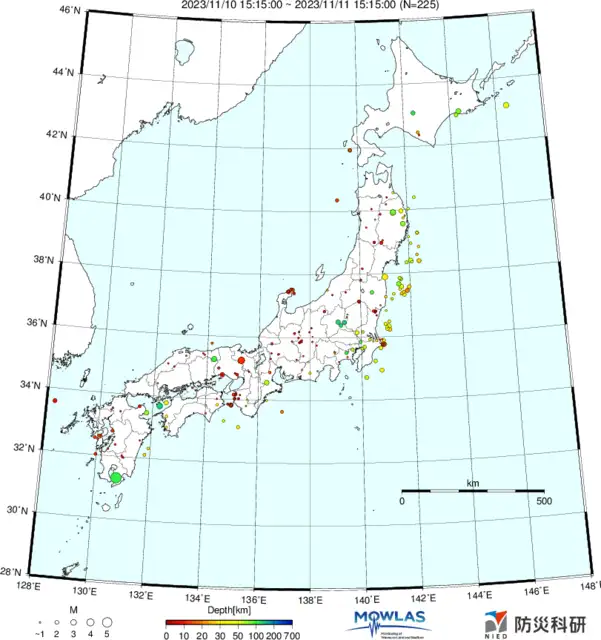 ●Hi-net日本地震分布と気象庁・・・hi-netの小笠原のデータは掲載日がずれて反映されるようです(翌々日に掲載)。掲載されないものもあるようなので気象庁の画像も付けます