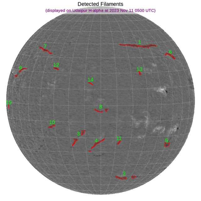 両極周辺以外の領域にフィラメントがあります