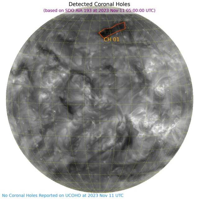北半球(高緯度)西側に小さなコロナホールがあります
