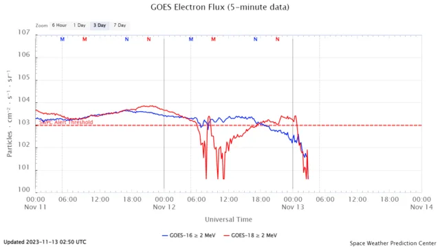 太陽フレアと黒点数(2023年11月13日更新)※CME到着予測あり