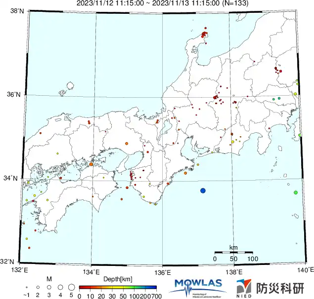 ●Hi-net日本地震分布と気象庁・・・hi-netの小笠原のデータは掲載日がずれて反映されるようです(翌々日に掲載)。掲載されないものもあるようなので気象庁の画像も付けます