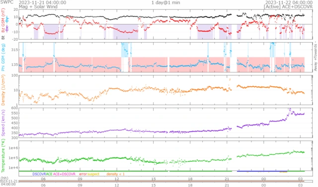 320km/s前後で推移していましたが徐々に上がり、現在540km/s前後で推移しています