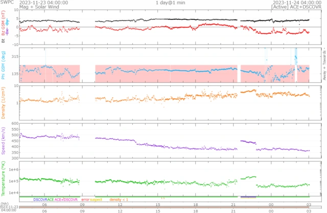 500km/s前後で推移していましたが徐々に下がり、現在370km/s前後で推移しています