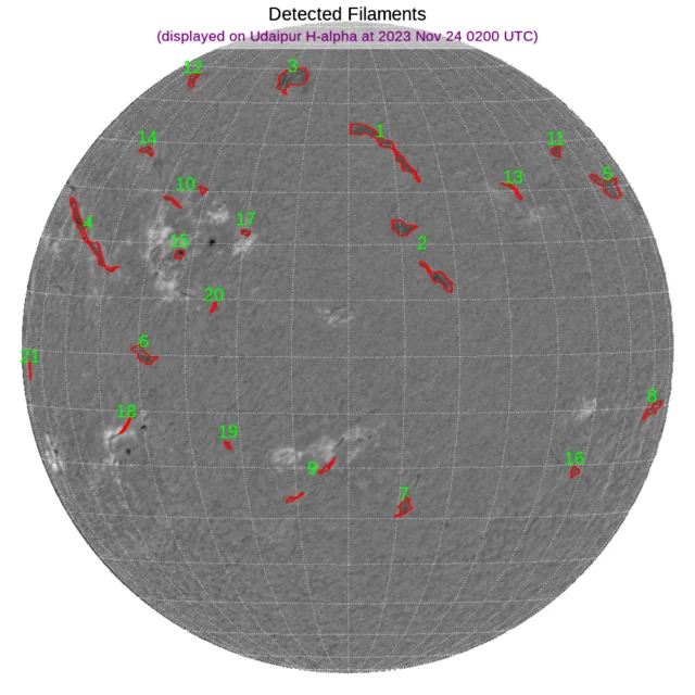 北半球東側を中心に、両極以外の領域にフィラメントがあります