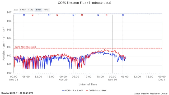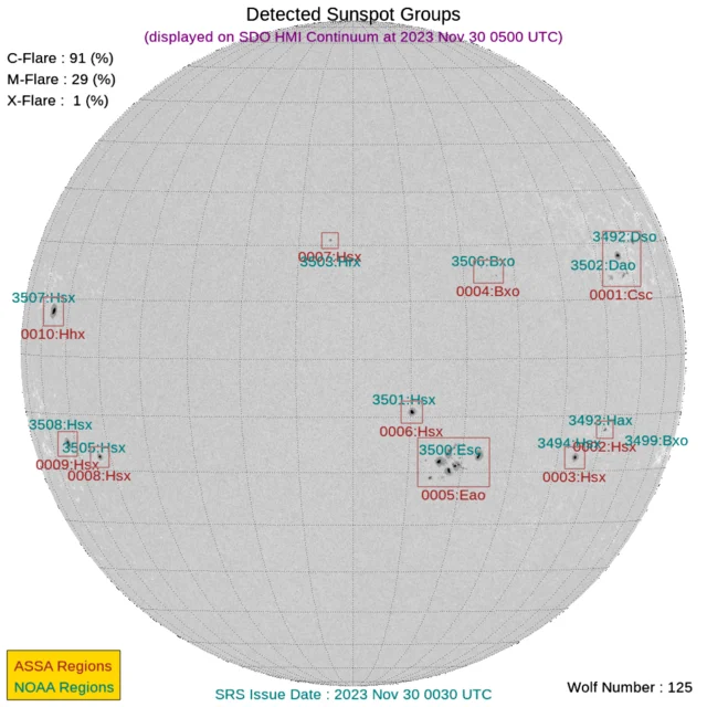 太陽フレアと黒点数(2023年11月30日更新)※CME到着予測あり