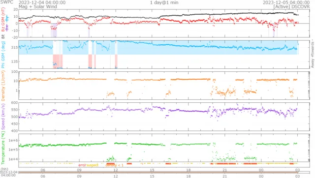 引き続き、550km/s前後で推移しています