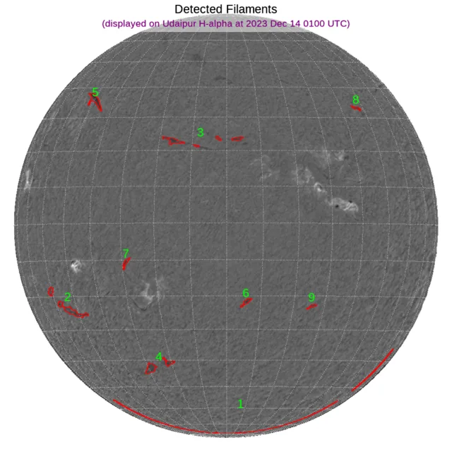 東側を中心に、北半球西端、南半球西より・西端にもフィラメントがあります
