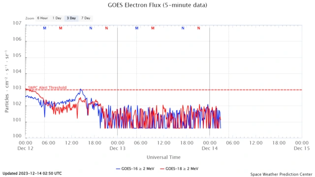 太陽フレアと黒点数(2023年12月14日更新)※CME到着予測あり