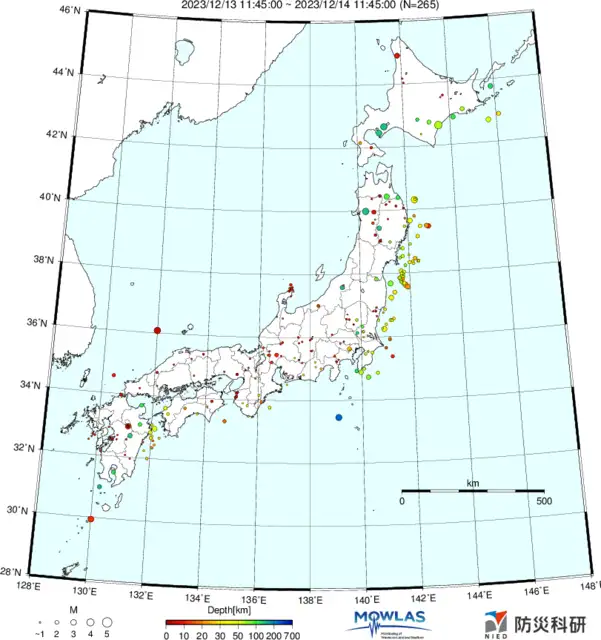 ●Hi-net日本地震分布と気象庁・・・hi-netの小笠原のデータは掲載日がずれて反映されるようです(翌々日に掲載)。掲載されないものもあるようなので気象庁の画像も付けます