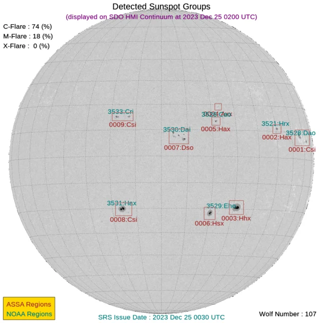 現時点で地球正面の黒点群は[3526, 3530, 3531, 3533]です。←黒点番号が振られていない活動領域でもフレアは発生しますので、あくまで目安として捉えてください。