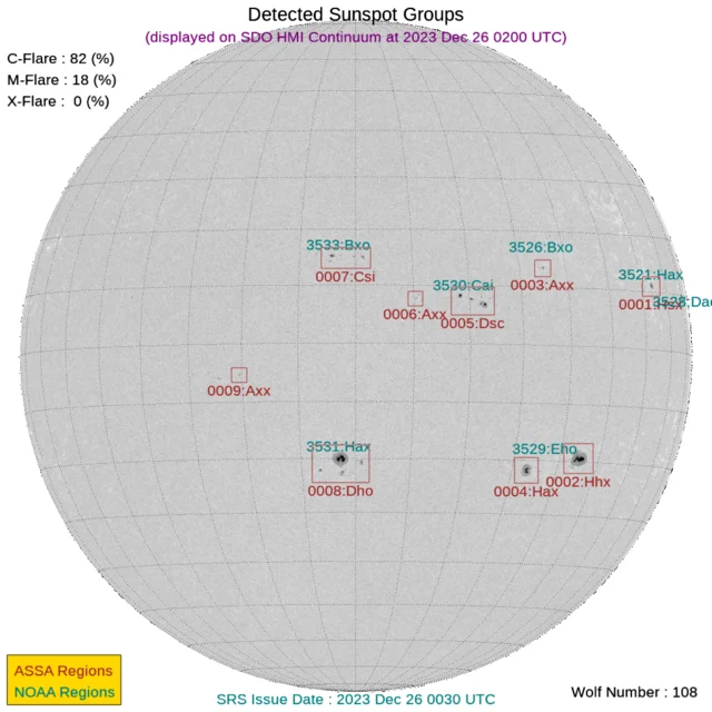 現時点で地球正面の黒点群は[3530, 3531, 3533]です。←黒点番号が振られていない活動領域でもフレアは発生しますので、あくまで目安として 捉えてください。