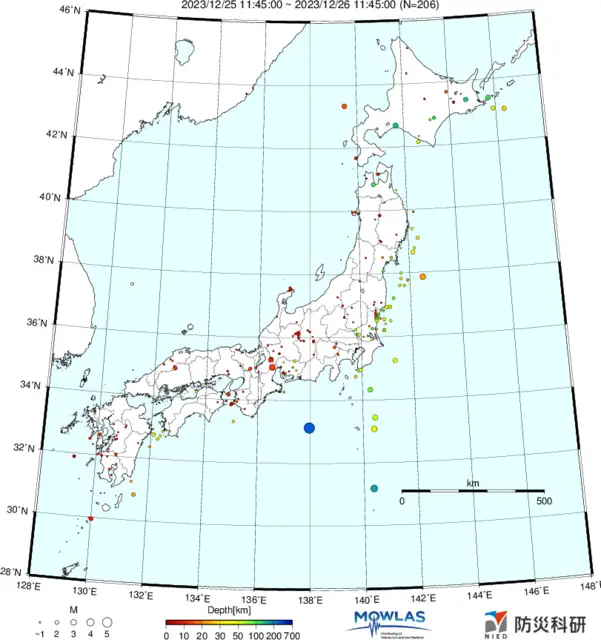 ●Hi-net日本地震分布と気象庁・・・hi-netの小笠原のデータは掲載日がずれて反映されるようです(翌々日に掲載)。掲載されないものもあるようなので気象庁の画像も付けます