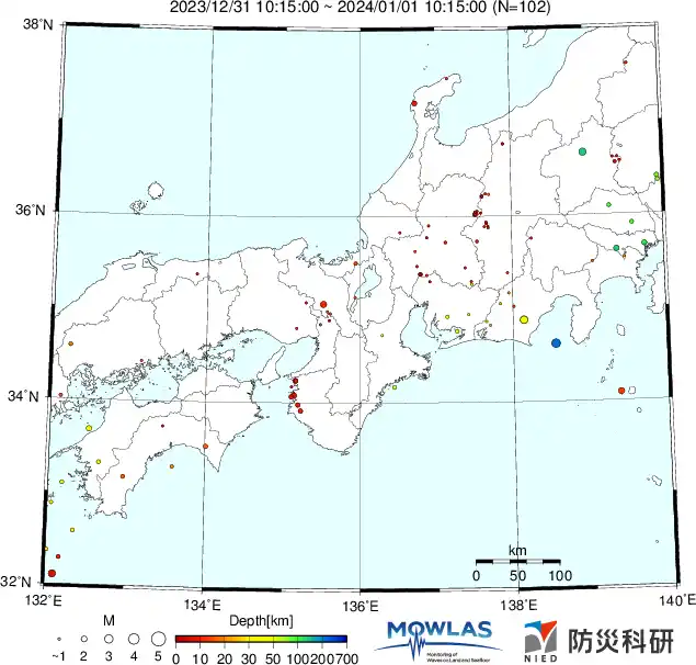 ●Hi-net日本地震分布と気象庁・・・hi-netの小笠原のデータは掲載日がずれて反映されるようです(翌々日に掲載)。掲載されないものもあるようなので気象庁の画像も付けます