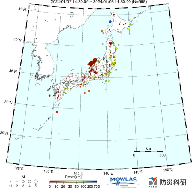 ●Hi-net日本地震分布と気象庁・・・hi-netの小笠原のデータは掲載日がずれて反映されるようです(翌々日に掲載)。掲載されないものもあるようなので気象庁の画像も付けます