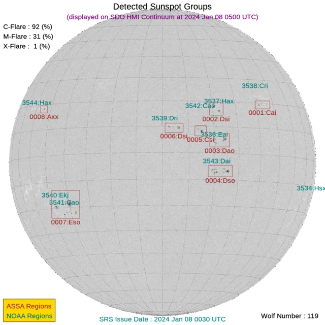 新しい黒点群が2個カウントされました。黒点数は171個です。