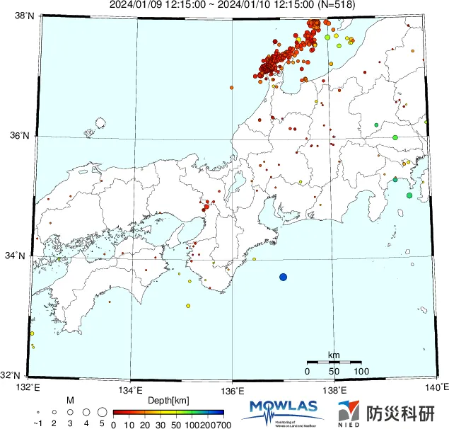 ●Hi-net日本地震分布と気象庁・・・hi-netの小笠原のデータは掲載日がずれて反映されるようです(翌々日に掲載)。掲載されないものもあるようなので気象庁の画像も付けます