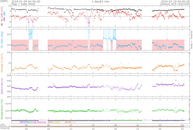 一時360km/s前後まで下がりましたが、現在410km/s前後で推移しています