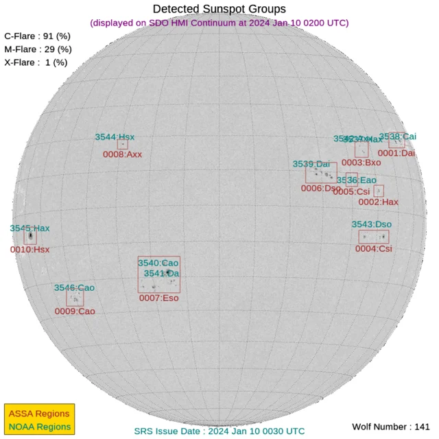 太陽フレアと黒点数(2024年01月10日更新)※CME到着予測あり