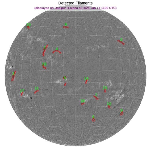 南半球東側、北半球西より以外の領域にフィラメントがあります