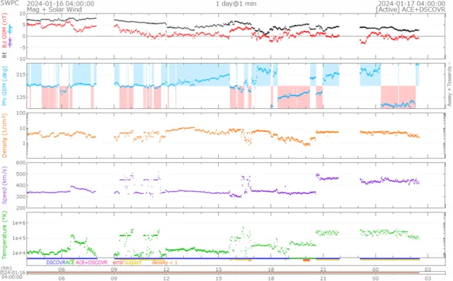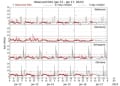 一時的に速度を増しながら上がり、現在450km/s前後で推移しています