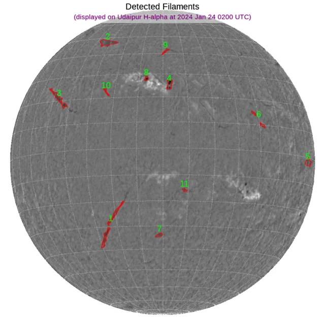 東端と南半球・北半球の中心付近、北半球西側にフィラメントがあります