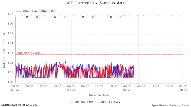 現時点で地球正面の黒点群はありません。←黒点番号が振られていない活動領域でもフレアは発生しますので、あくまで目安として捉えてください。
