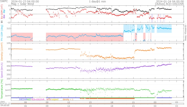 470km/s前後で推移していましたが徐々に下がり、現在400km/s前後で推移しています