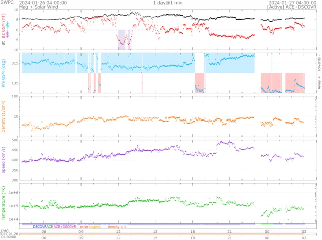 400km/s前後で推移していましたが徐々に上がり、一時480km/s前後まで上がりました。現在は420km/s前後で推移しています。