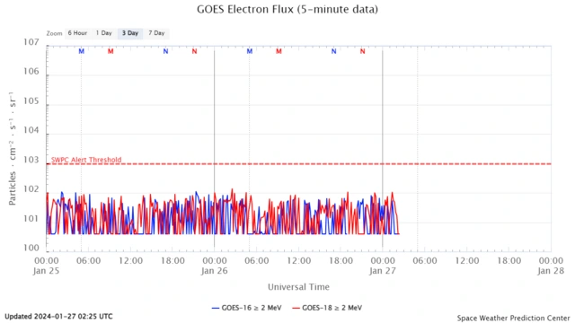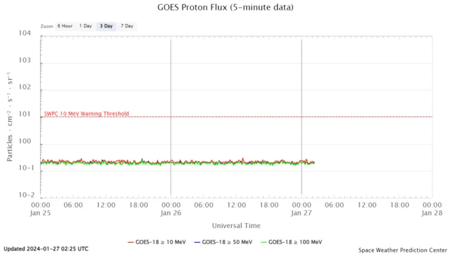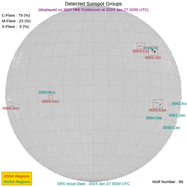 現時点で地球正面の黒点群はありません。←黒点番号が振られていない活動領域でもフレアは発生しますので、あくまで目安として捉えてください。