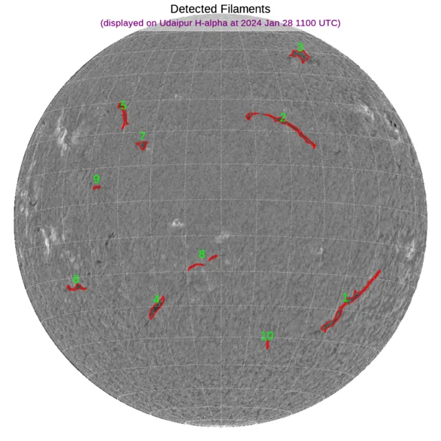 北半球西より、南半球西側に長めのフィラメントがあります。