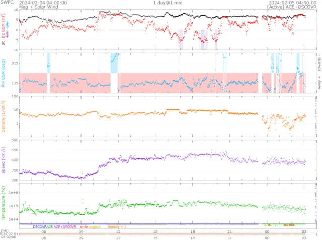 一時310km/s前後まで下がり、その後430km/s前後まで上がりました。現在は390km/s前後で推移しています