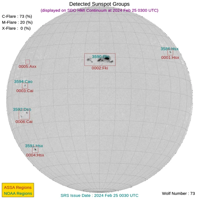 太陽フレアと黒点数(2024年02月25日更新)※中規模頻発&CME到着予測あり