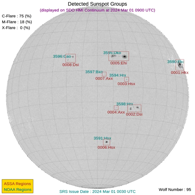 太陽フレアと黒点数(2024年03月01日更新)※CME到着予測あり