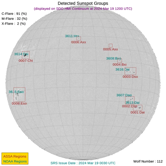フレアは、3615と3616で発生していて、中規模は3615が発生源です。